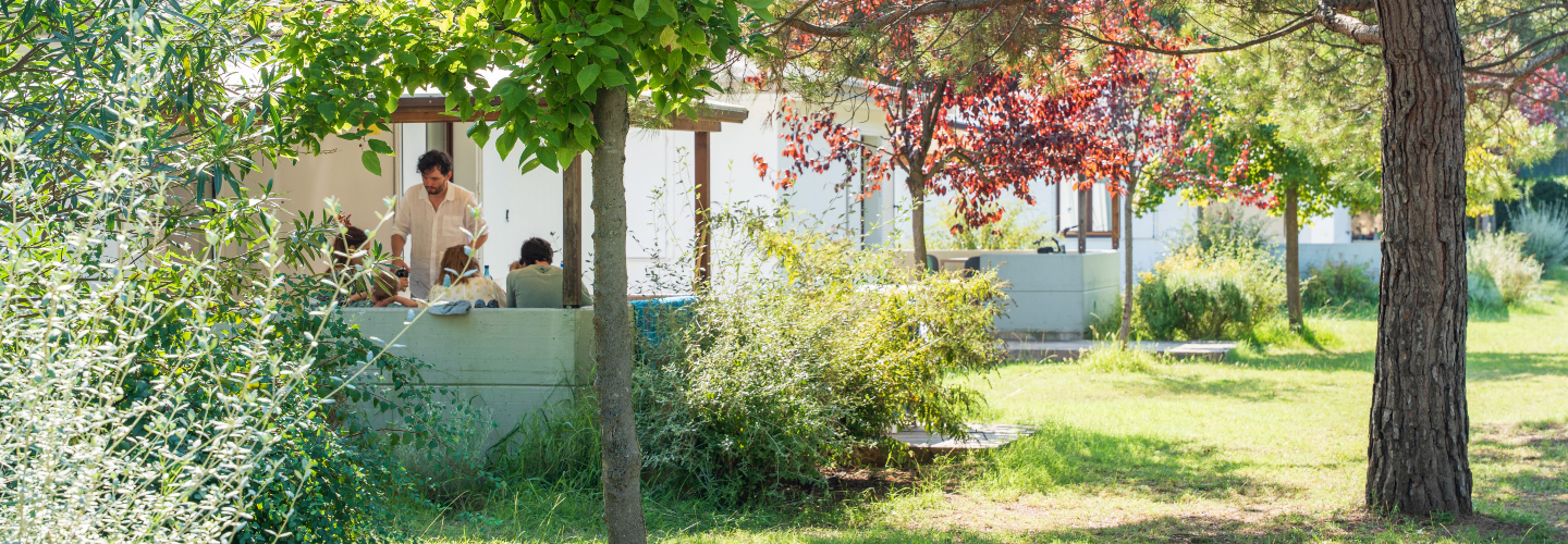 Bungalow Comfort ligger i et roligt område af campingpladsen mellem fyrreskoven og stranden og omgivet af træer og blomstrende planter: en drømmehave, hvor børn leger!