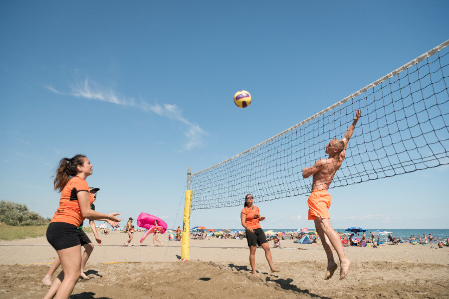 Szeroka plaża o drobnym złocistym piasku, z której rozciąga się widok na kemping Ca’Savio, jest idealnym miejscem nie tylko na relaks i podziwianie morza, ale także na uprawianie siatkówki plażowej.